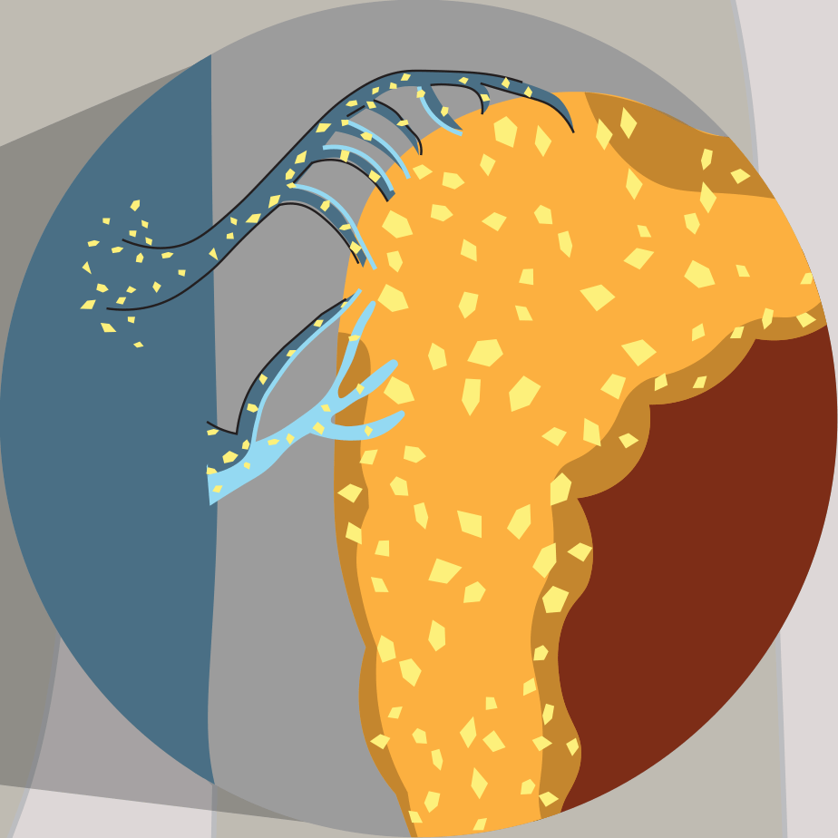 This is an illustration made for Italian public explaining how cortisol produced by the Adrenal gland spreads inside the body